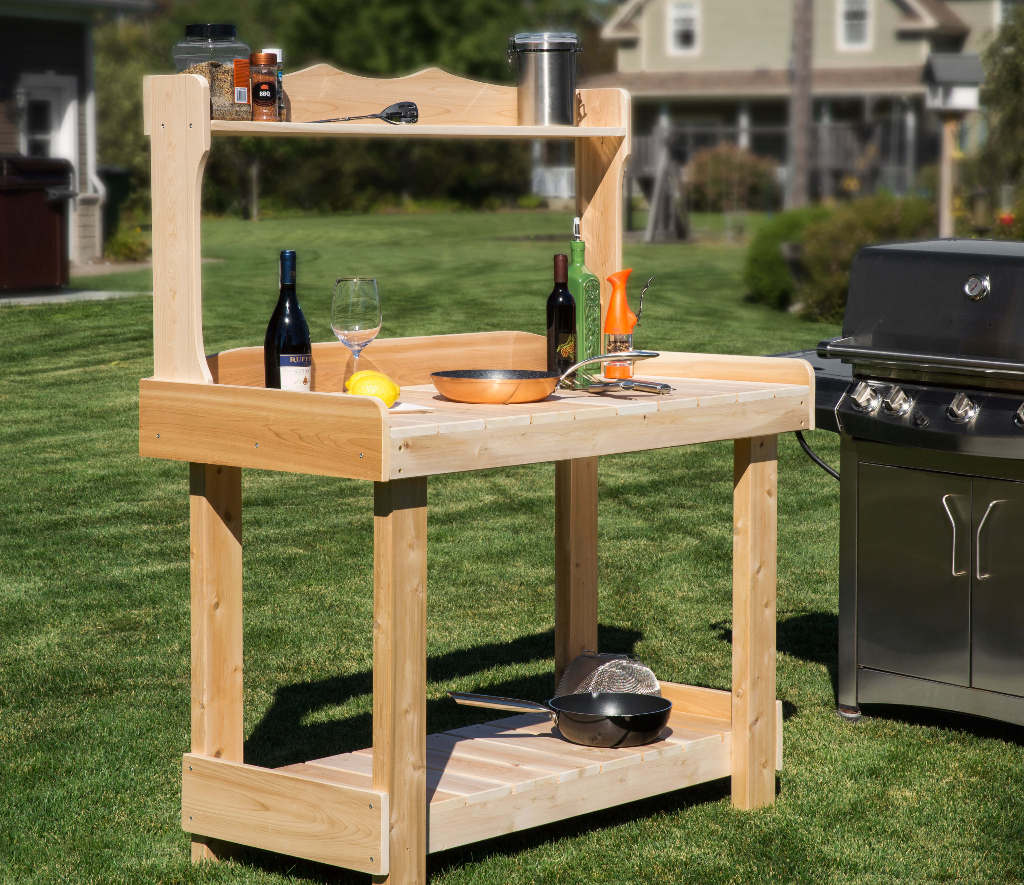 Une foule de meubles rustiques en cèdre blanc pour agrémenter la cour